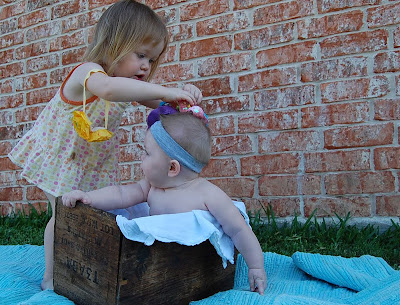 Thankfully during the madness of starting back to work (bitter sweet), Aunt Ba had time to squeeze in a fun outdoor photo shoot for Annabelle. And there are a couple of cute ones with Annie in Katy Jo's doll stroller. Here you go...